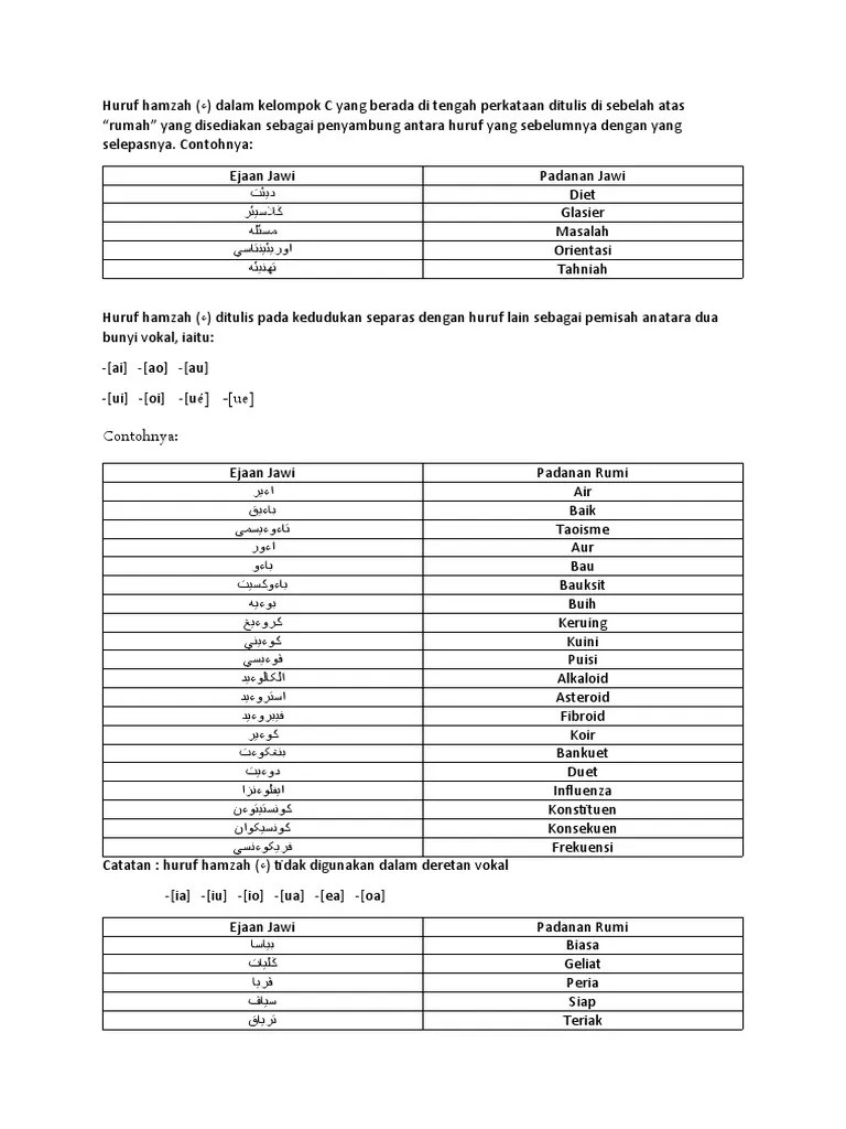 Bahasa, dbp untuk kemas kini buku daftar kata bahasa melayu: Baca versi flipbook dari kedudukan hamzah dalam ejaan jawi. Dalam sistem ejaan jawi yang disempurnakan, huruf hamzah mempunyai fungsi dan kedudukannya yang tersendiri. Hamzah di bawah huruf alif;